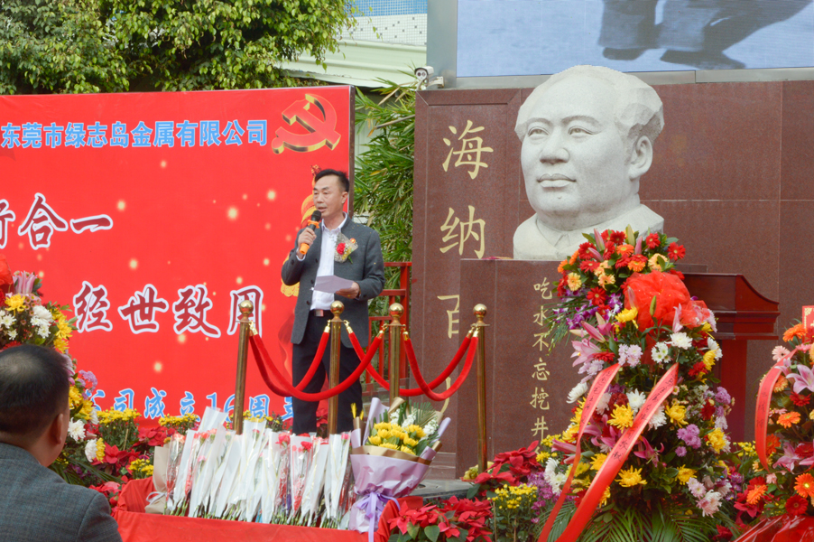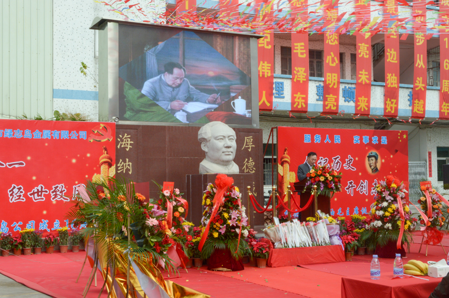 綠志島實業由朱祖生先生創業于2001年,經過多年的發展奮斗,現在公司產品包括焊錫條、焊錫絲、焊錫膏,清洗劑,防銹劑,潤滑油等。綠志島實業的發展,在以毛主席思想為信仰的指引下突飛猛進,在“吃水不忘挖井人”的感恩心下穩步發展。為了鞏固毛主席思想作為綠志島的信仰核心,綠志島于2012年12月25日從泰山迎接來毛主席泰山石像,并立于公司內部。自此,綠志島每年12月26日都會齊聚眾多認同毛主席的追隨者,在綠志島內緬懷紀念偉大領袖毛主席。